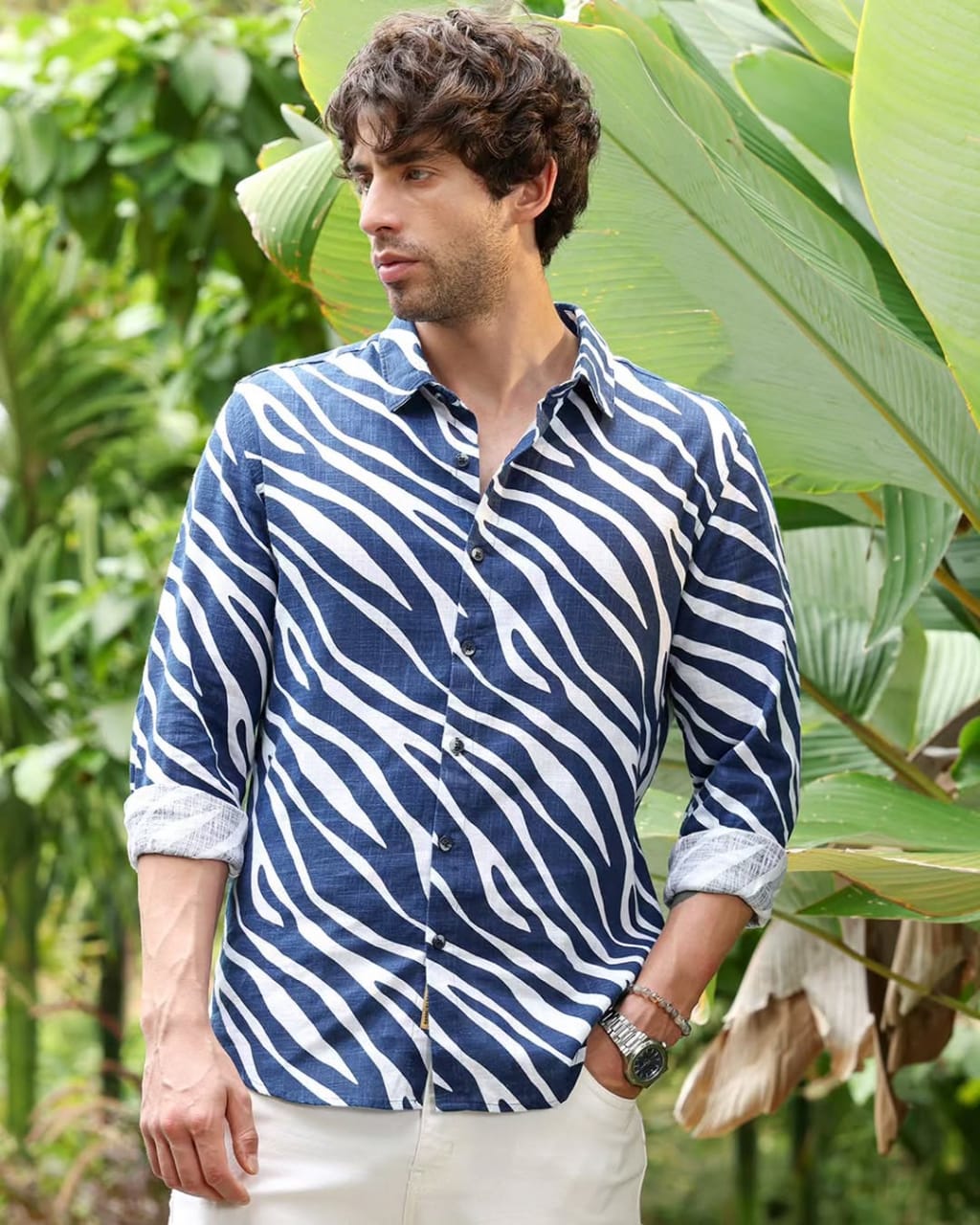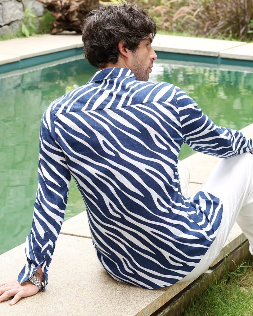 Be the first to review “Bold Blue & White Zebra Print Casual Shirt”